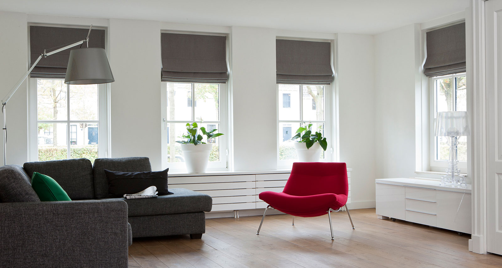 Ofrece una vista diferente y original, por su plegado único, producto de un ingenioso sistema que recoge la tela hacia adentro con atractivos resultados, de un manejo fácil, confiable y seguro.